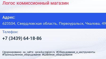 Логос, комиссионный магазин по адресу 623104, Свердловская область, Первоуральск, Чкалова, 49 в дальнейшем Организация, размещена в следующих категориях: