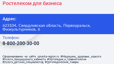 Ростелеком для бизнеса по адресу 623104, Свердловская область, Первоуральск, Физкультурников, 6 в дальнейшем Организация, размещена в следующих категориях: