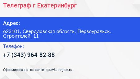 Телеграф, г. Екатеринбург по адресу 623101, Свердловская область, Первоуральск, Строителей, 11 в дальнейшем Организация, размещена в следующих категориях: