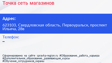 Точка, сеть магазинов по адресу 623103, Свердловская область, Первоуральск, проспект Ильича, 28в в дальнейшем Организация, размещена в следующих категориях: