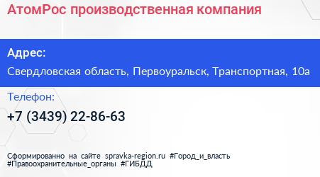 АтомРос, производственная компания по адресу Свердловская область, Первоуральск, Транспортная, 10а в дальнейшем Организация, размещена в следующих категориях:
