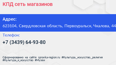 КПД, сеть магазинов по адресу 623104, Свердловская область, Первоуральск, Чкалова, 44 в дальнейшем Организация, размещена в следующих категориях: