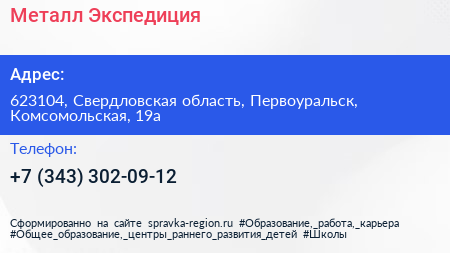 Металл Экспедиция по адресу 623104, Свердловская область, Первоуральск, Комсомольская, 19а в дальнейшем Организация, размещена в следующих категориях: