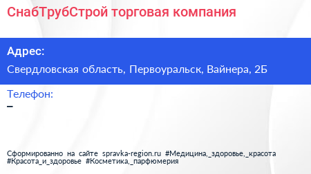 СнабТрубСтрой, торговая компания по адресу Свердловская область, Первоуральск, Вайнера, 2Б в дальнейшем Организация, размещена в следующих категориях: