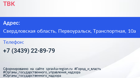 ТВК по адресу Свердловская область, Первоуральск, Транспортная, 10а в дальнейшем Организация, размещена в следующих категориях: