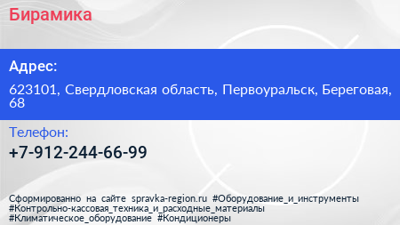 Бирамика по адресу 623101, Свердловская область, Первоуральск, Береговая, 68 в дальнейшем Организация, размещена в следующих категориях: