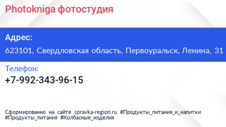 Photokniga, фотостудия по адресу 623101, Свердловская область, Первоуральск, Ленина, 31 в дальнейшем Организация, размещена в следующих категориях: