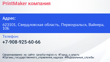 PrintMaker, компания по адресу 623101, Свердловская область, Первоуральск, Вайнера, 10Б в дальнейшем Организация, размещена в следующих категориях: