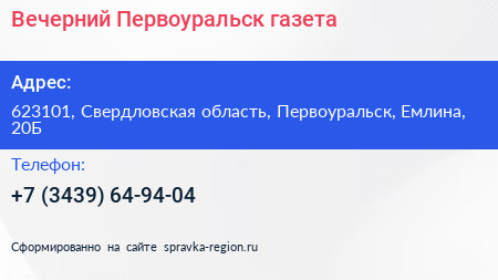 Вечерний Первоуральск, газета по адресу 623101, Свердловская область, Первоуральск, Емлина, 20Б в дальнейшем Организация, размещена в следующих категориях: