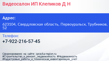 Видеосалон, ИП Клепиков Д.Н. по адресу 623104, Свердловская область, Первоуральск, Трубников, 52 в дальнейшем Организация, размещена в следующих категориях: