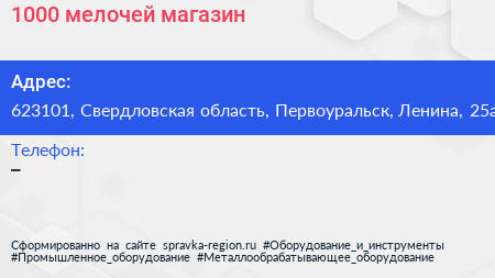 1000 мелочей, магазин по адресу 623101, Свердловская область, Первоуральск, Ленина, 25а в дальнейшем Организация, размещена в следующих категориях: