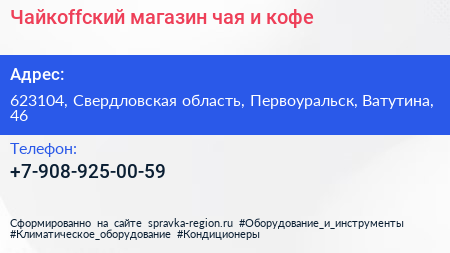 Чайкоffский, магазин чая и кофе по адресу 623104, Свердловская область, Первоуральск, Ватутина, 46 в дальнейшем Организация, размещена в следующих категориях: