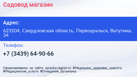 Садовод, магазин по адресу 623104, Свердловская область, Первоуральск, Ватутина, 34 в дальнейшем Организация, размещена в следующих категориях: