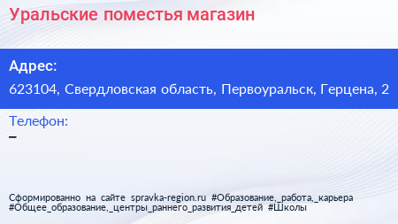 Уральские поместья, магазин по адресу 623104, Свердловская область, Первоуральск, Герцена, 2 в дальнейшем Организация, размещена в следующих категориях: