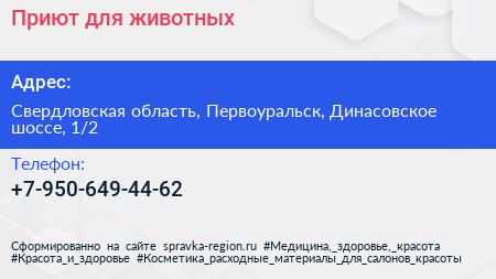 Приют для животных по адресу Свердловская область, Первоуральск, Динасовское шоссе, 1/2 в дальнейшем Организация, размещена в следующих категориях: