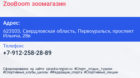 ZooBoom, зоомагазин по адресу 623103, Свердловская область, Первоуральск, проспект Ильича, 28в в дальнейшем Организация, размещена в следующих категориях:
