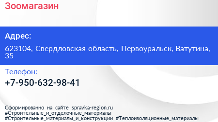 Зоомагазин по адресу 623104, Свердловская область, Первоуральск, Ватутина, 35 в дальнейшем Организация, размещена в следующих категориях: