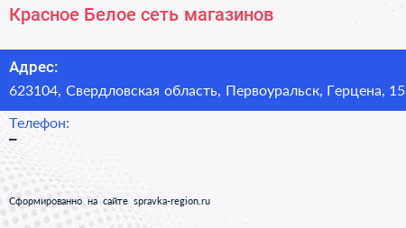 Красное & Белое, сеть магазинов по адресу 623104, Свердловская область, Первоуральск, Герцена, 15 в дальнейшем Организация, размещена в следующих категориях: