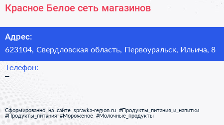 Красное & Белое, сеть магазинов по адресу 623104, Свердловская область, Первоуральск, Ильича, 8 в дальнейшем Организация, размещена в следующих категориях: