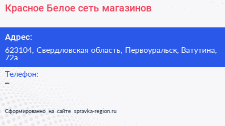 Красное & Белое, сеть магазинов по адресу 623104, Свердловская область, Первоуральск, Ватутина, 72а в дальнейшем Организация, размещена в следующих категориях: