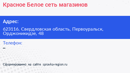 Красное & Белое, сеть магазинов по адресу 623116, Свердловская область, Первоуральск, Орджоникидзе, 48 в дальнейшем Организация, размещена в следующих категориях: