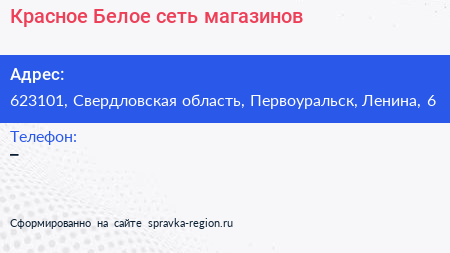 Красное & Белое, сеть магазинов по адресу 623101, Свердловская область, Первоуральск, Ленина, 6 в дальнейшем Организация, размещена в следующих категориях: