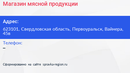 Магазин мясной продукции по адресу 623101, Свердловская область, Первоуральск, Вайнера, 45в в дальнейшем Организация, размещена в следующих категориях: