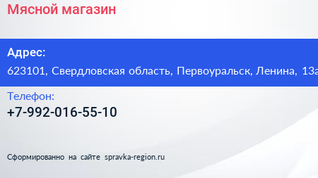 Мясной, магазин по адресу 623101, Свердловская область, Первоуральск, Ленина, 13а в дальнейшем Организация, размещена в следующих категориях: