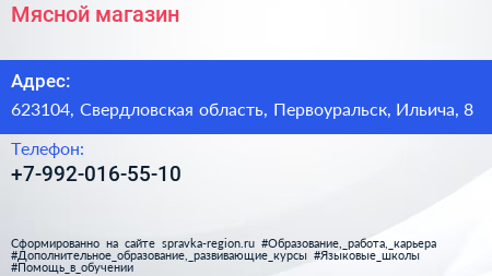 Мясной, магазин по адресу 623104, Свердловская область, Первоуральск, Ильича, 8 в дальнейшем Организация, размещена в следующих категориях: