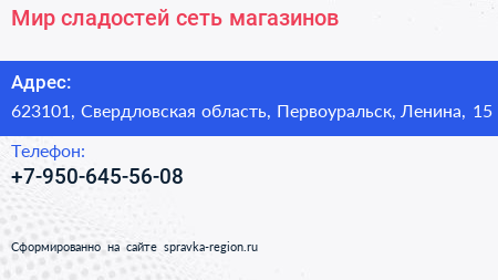 Мир сладостей, сеть магазинов по адресу 623101, Свердловская область, Первоуральск, Ленина, 15 в дальнейшем Организация, размещена в следующих категориях: