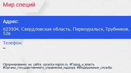 Мир специй по адресу 623104, Свердловская область, Первоуральск, Трубников, 52в в дальнейшем Организация, размещена в следующих категориях: