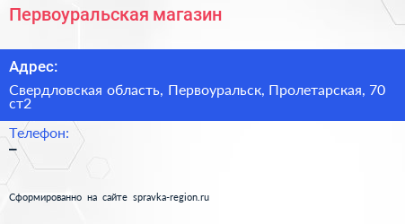Первоуральская, магазин по адресу Свердловская область, Первоуральск, Пролетарская, 70 ст2 в дальнейшем Организация, размещена в следующих категориях: