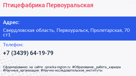 Птицефабрика Первоуральская по адресу Свердловская область, Первоуральск, Пролетарская, 70 ст1 в дальнейшем Организация, размещена в следующих категориях: