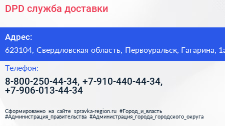DPD, служба доставки по адресу 623104, Свердловская область, Первоуральск, Гагарина, 1а в дальнейшем Организация, размещена в следующих категориях: