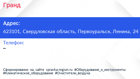 Гранд по адресу 623101, Свердловская область, Первоуральск, Ленина, 24 в дальнейшем Организация, размещена в следующих категориях: