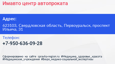 Имавто, центр автопроката по адресу 623103, Свердловская область, Первоуральск, проспект Ильича, 31 в дальнейшем Организация, размещена в следующих категориях: