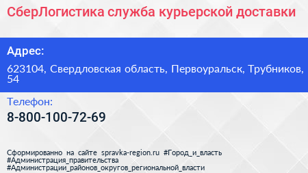 СберЛогистика, служба курьерской доставки по адресу 623104, Свердловская область, Первоуральск, Трубников, 54 в дальнейшем Организация, размещена в следующих категориях:
