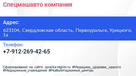 Спецмашавто, компания по адресу 623104, Свердловская область, Первоуральск, Урицкого, 1а в дальнейшем Организация, размещена в следующих категориях: