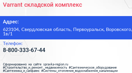 Varrant, складской комплекс по адресу 623104, Свердловская область, Первоуральск, Воровского, 1в/1 в дальнейшем Организация, размещена в следующих категориях: