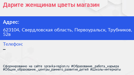 Дарите женщинам цветы, магазин по адресу 623104, Свердловская область, Первоуральск, Трубников, 52в в дальнейшем Организация, размещена в следующих категориях: