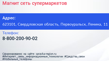 Магнит, сеть супермаркетов по адресу 623101, Свердловская область, Первоуральск, Ленина, 11 в дальнейшем Организация, размещена в следующих категориях: