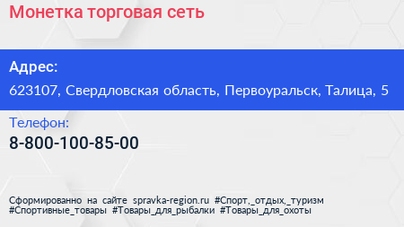 Монетка, торговая сеть по адресу 623107, Свердловская область, Первоуральск, Талица, 5 в дальнейшем Организация, размещена в следующих категориях: