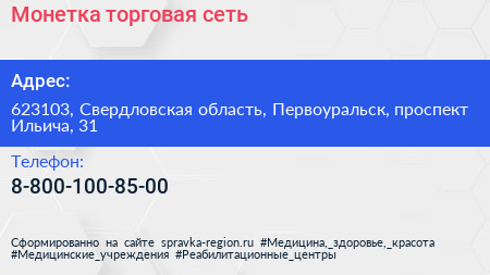 Монетка, торговая сеть по адресу 623103, Свердловская область, Первоуральск, проспект Ильича, 31 в дальнейшем Организация, размещена в следующих категориях:
