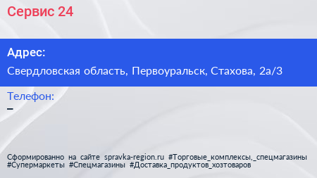 Сервис-24 по адресу Свердловская область, Первоуральск, Стахова, 2а/3 в дальнейшем Организация, размещена в следующих категориях:
