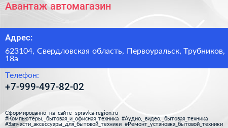 Авантаж, автомагазин по адресу 623104, Свердловская область, Первоуральск, Трубников, 18а в дальнейшем Организация, размещена в следующих категориях: