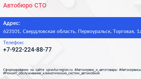 Автобюро, СТО по адресу 623101, Свердловская область, Первоуральск, Торговая, 1а в дальнейшем Организация, размещена в следующих категориях: