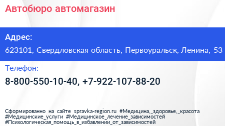 Автобюро, автомагазин по адресу 623101, Свердловская область, Первоуральск, Ленина, 53 в дальнейшем Организация, размещена в следующих категориях: