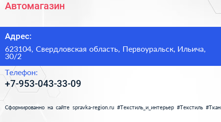 Автомагазин по адресу 623104, Свердловская область, Первоуральск, Ильича, 30/2 в дальнейшем Организация, размещена в следующих категориях: