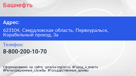 Башнефть по адресу 623104, Свердловская область, Первоуральск, Корабельный проезд, 3а в дальнейшем Организация, размещена в следующих категориях:
