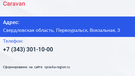 Caravan по адресу Свердловская область, Первоуральск, Вокзальная, 3 в дальнейшем Организация, размещена в следующих категориях: